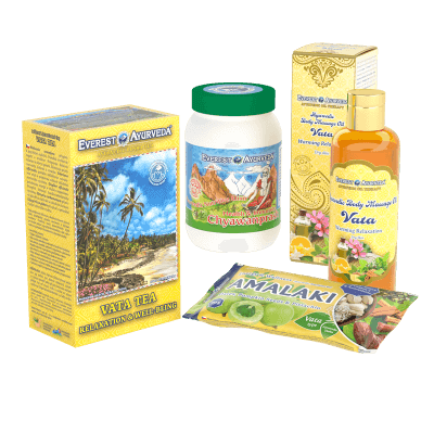 Ayurvedic dosha tea: Pitta 1pc, Ayurvedic nutritive elixir: Chyawanprash 1pc, Ayurvedic body oil: Pitta 1pc, Ayurvedic nutrition bar: Amalaki Pitta 1pc