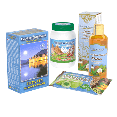 This Ayurvedic dosha therapy is suitable for people with predominantly vata constitution. An aggravation of this dosha can cause: dehydration, dry and cracked skin, cracking joints, insomnia, drowsiness, weight loss, cold limbs, poor circulation, stiffness, cramps, trembling, insecurity, anxiety and fear. Take Ayurvedic Vata tea along with Chyawanprash nutritive elixir 2-3 times a day and apply Vata body oil on the skin as part of daily self-massage (abhyanga). Amalaki Vata nutrition bar contributes to energy metabolism in accordance with the constitutional type of vata. The therapy is suitable for long-term use between 1-6 months.