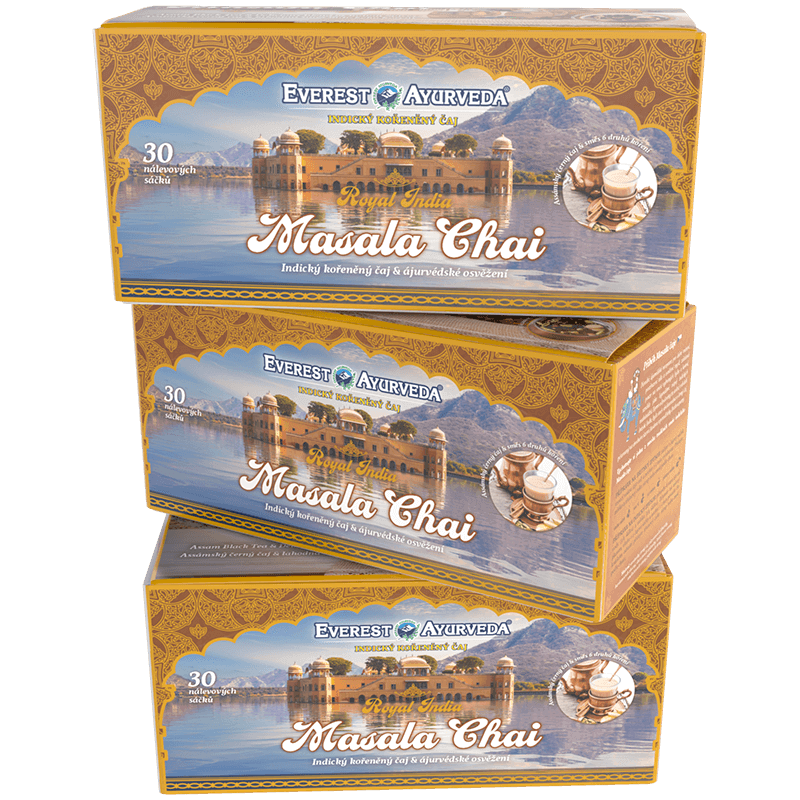 The original Ayurvedic formula for good digestion, invigorating the body and refreshing the mind based only on a blend of selected herbs and spices originated as a legendary drink of the Indian Maharajas. It was only in the mid-19th century, during the British India period, that the blend was enriched with black tea cultivated in the fertile Assam region of the Brahmaputra basin. Enjoy one of the many traditional blends of Indian Masala Chai.