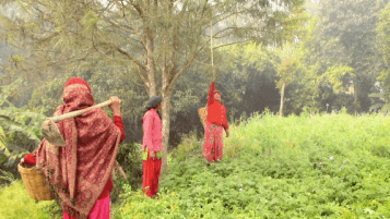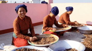 Jawahar Lal has been working with Bandhari for many years. They know each other well, and Bandhari supplies him with herbs of the highest quality. For Ayurvedic blends, Jawahar Lal also uses lemongrass, tulsi, and mint from the fertile plains on the border between Nepal and India, while other herbs are sourced from gatherers in the Dang region, which has an almost tropical climate in the southwest of the country. Another important area, Sankhu, is located northeast of Kathmandu. The Sarlahi region in the south of the country, as well as  local herb markets are another source of the rich variety of herbs used to produce Himalayan Ayurvedic teas. Some of these plants are also grown by local people on their fields using traditional methods without the use of any chemical fertilizers.