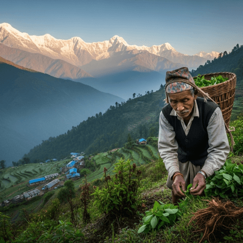 When the morning sun touches the peaks of the Mahabharata mountain range in Nepal, a world that seems to have stopped in time begins to awaken. In the higher elevations of the Himalayan foothills, where the air is clearer than crystal and every breath brings a feeling of physical and mental purification, the daily story of Ayurvedic herb gathering unfolds.