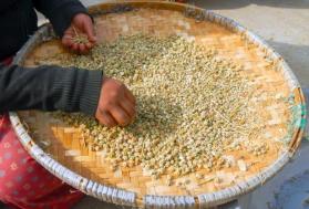 Properly dried amalaki fruit (Emblica Officinalis) is obtained in the Dang region, the second largest valley in Asia, which stretches between the Siwalik Mountains and the Mahabharat mountain range. This is where the fresh harvest of not only amalaki, but also the legendary herb tulsi (Holy Basil) and many other herbs comes from, which are then transported to Kathmandu. The journey of these plants is a story in itself – from the mountain slopes and valleys to the capital, where the experienced hands of Nepalese women await them.