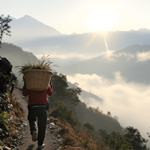 When she descends in the evening with a basket full of carefully collected plants, the sun slowly hides behind the peaks. This is how Himalayan herbs make their way from inaccessible heights to your home – with a story, a long-standing tradition, and above all, a deep understanding and endless love for nature.